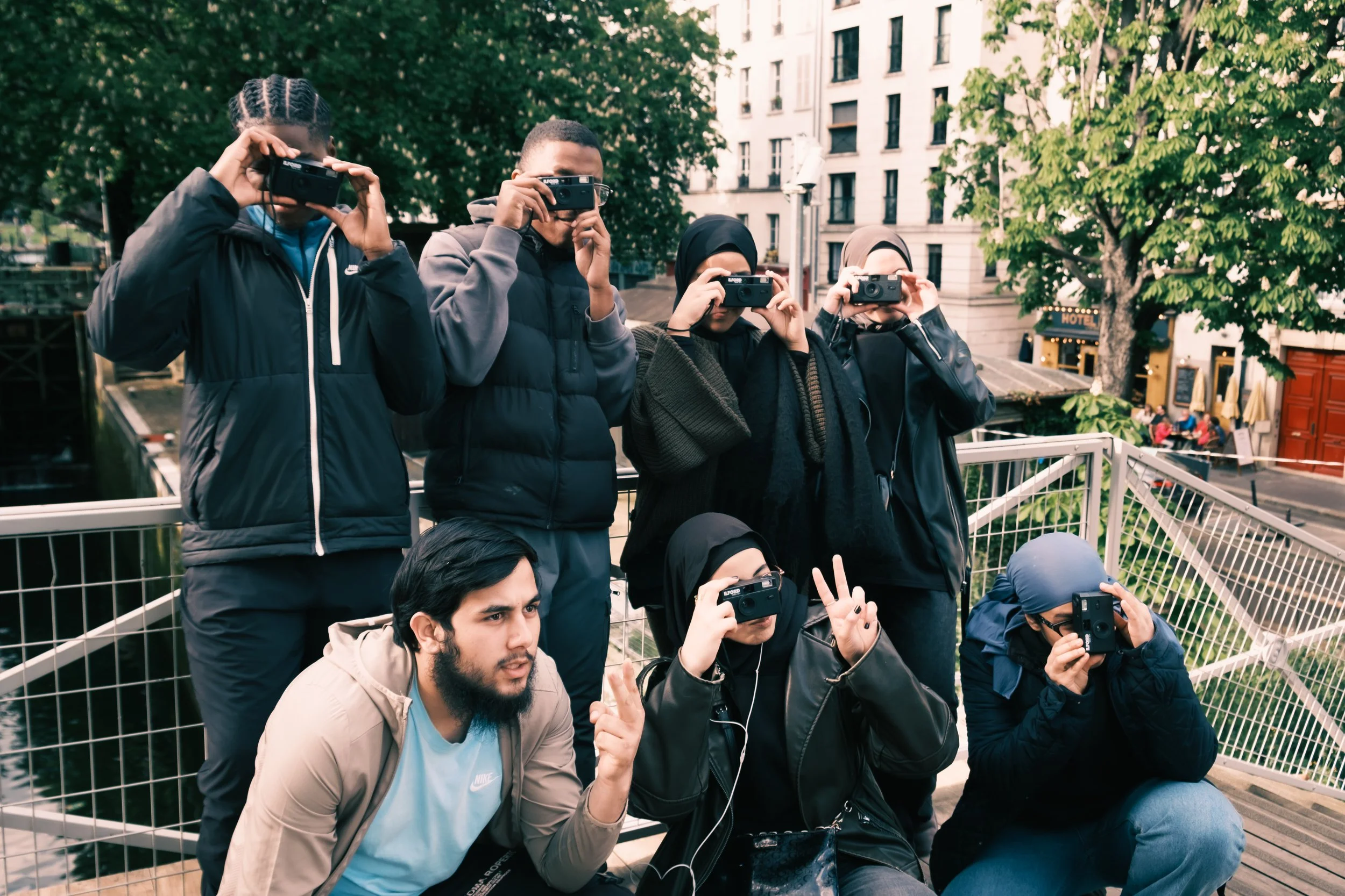 Nos ateliers se déclinent en formats structurés tout en restant entièrement adaptables aux besoins et aux contraintes de chaque structure. Le déroulé type commence par une première séance dédiée à la théorie et à l’histoire de la photographie, accompagnée d’une prise en main du matériel. Selon la demande, nous travaillons avec différents outils : appareils instantanés (Polaroid), appareils jetables, argentiques, hybrides ou numériques. Cette introduction permet aux participant·es d’acquérir les bases nécessaires pour aborder la pratique avec confiance.
